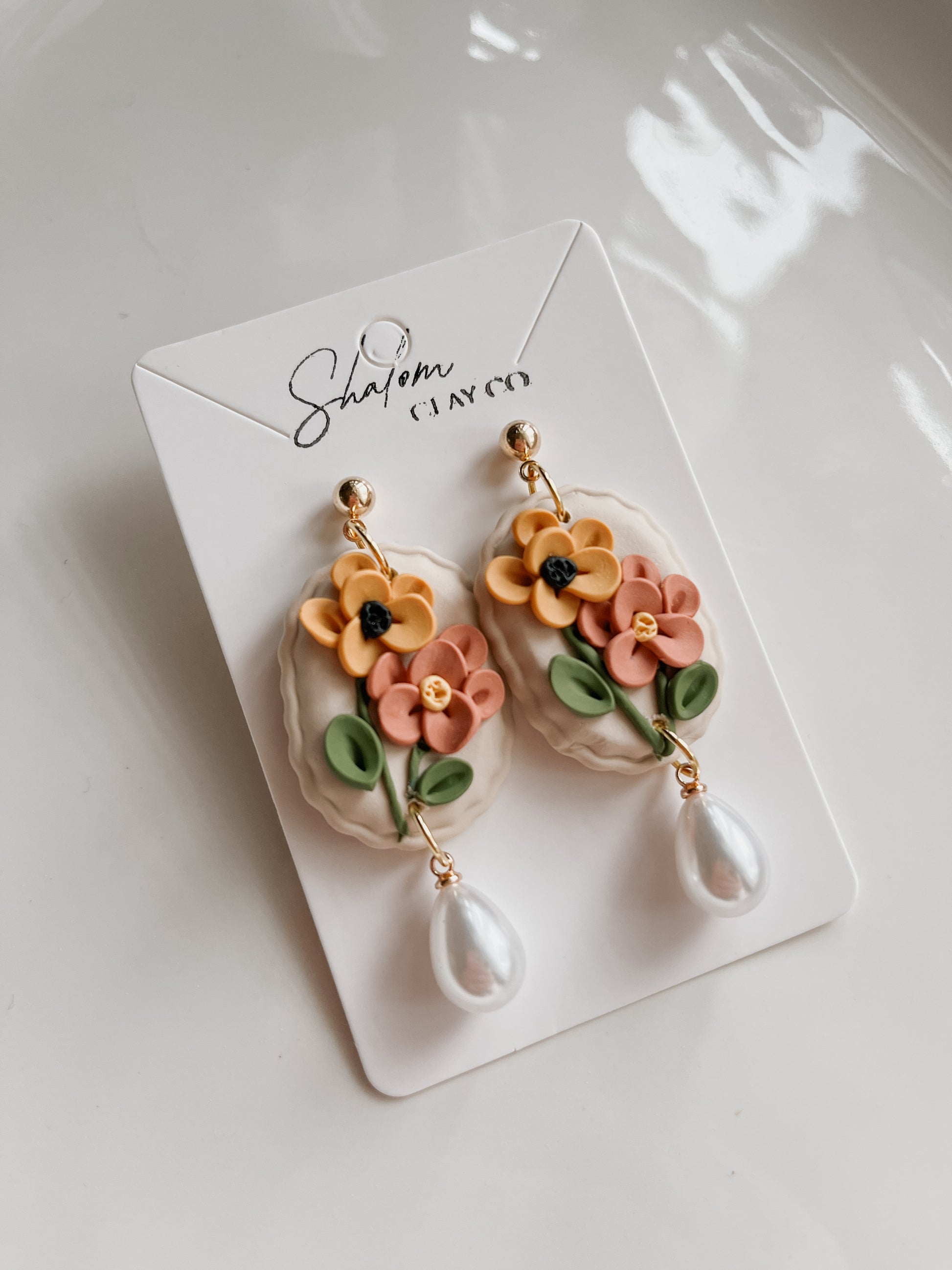 Autumn Floral Statement Dangles with Pearl Drop